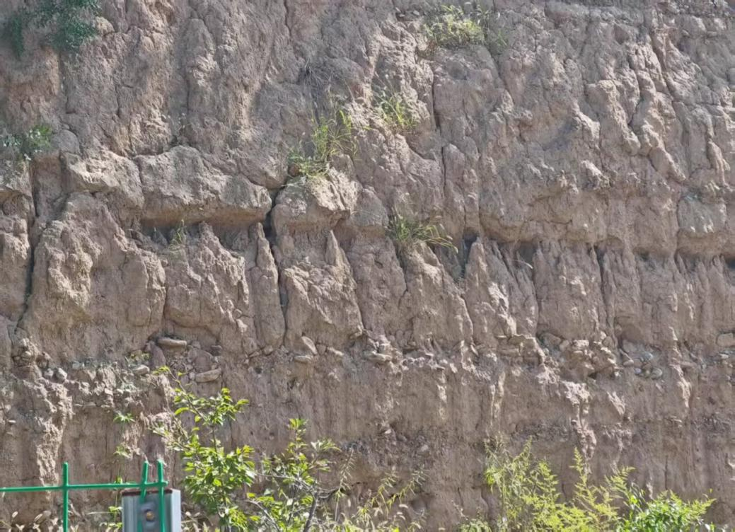 實習首站為靈巖山及其周邊區(qū)域。首先映入眼簾的是靈巖寺周邊大片黃土堆積的景象。值得注意的是,該區(qū)域母巖以頁巖和礫石為主,且地勢陡峻,不利于細顆粒物質的沉積。因而,本地巖石風化難以形成如此致密的黃土層。結合地貌特征,師生推測該處黃土來源于遠距離風力搬運,并在長期沉積過程中形成。為驗證這一推斷,教師現(xiàn)場演示實驗:采集黃土樣本,滴加稀鹽酸后出現(xiàn)明顯氣泡,證實其含有碳酸鹽,符合風成黃土的成分特征。