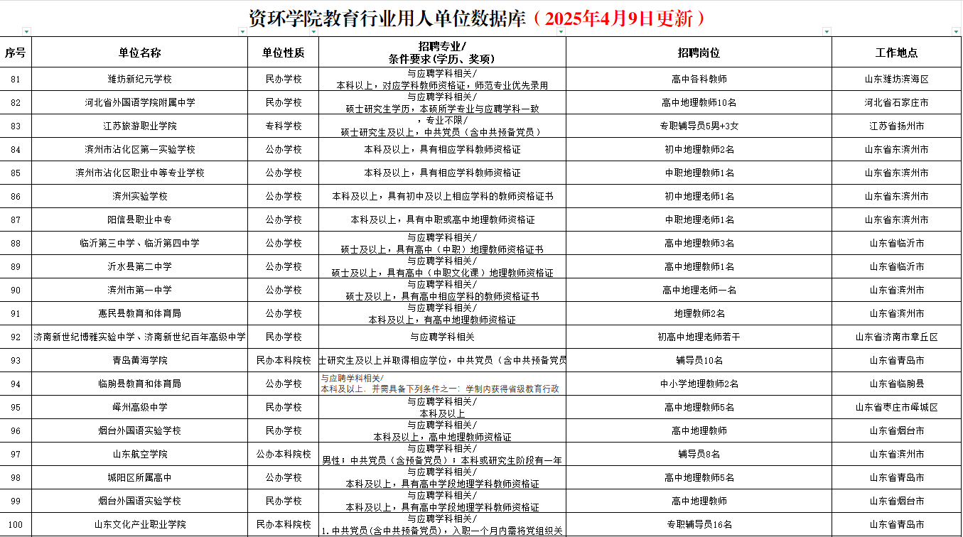 招聘條件:本科及以上,有高中地理教師資格證