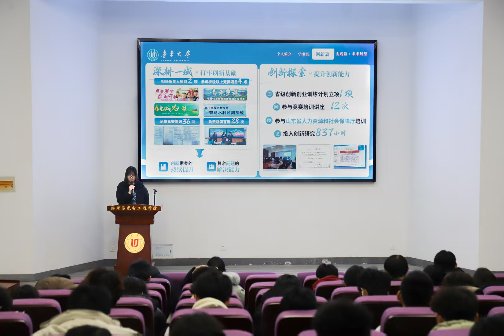 為充分發(fā)揮優(yōu)秀學(xué)生示范引領(lǐng)作用,激發(fā)學(xué)生學(xué)習(xí)熱情。12月10日,魯東大學(xué)資源與環(huán)境工程學(xué)院、物理與光電工程學(xué)院于北區(qū)二號(hào)教學(xué)樓報(bào)告廳聯(lián)合舉辦“2024-2025學(xué)年校長(zhǎng)獎(jiǎng)學(xué)金十佳學(xué)生巡回宣講活動(dòng)”。活動(dòng)特邀兩位校長(zhǎng)獎(jiǎng)學(xué)金十佳學(xué)生獲得者——資源與環(huán)境工程學(xué)院楊柳、物理與光電工程學(xué)院陳佳琪,分享個(gè)人成長(zhǎng)經(jīng)驗(yàn)與學(xué)術(shù)實(shí)踐成果,為在場(chǎng)師弟師妹們帶來(lái)了一場(chǎng)兼具深度與溫度的朋輩領(lǐng)航課。